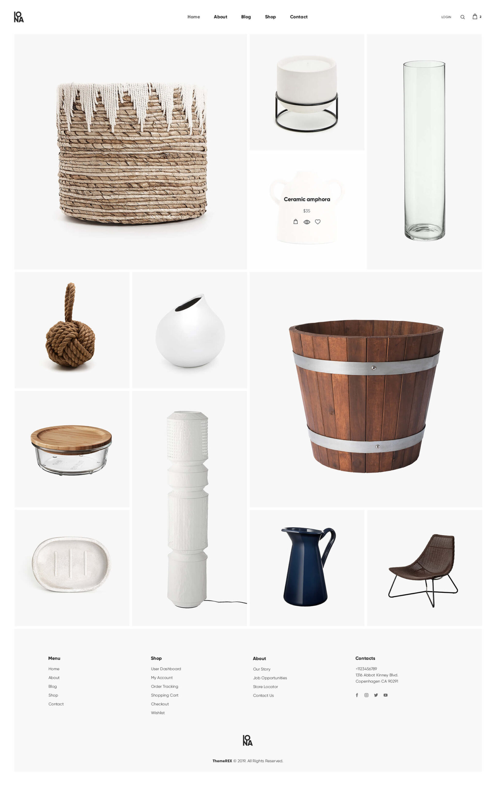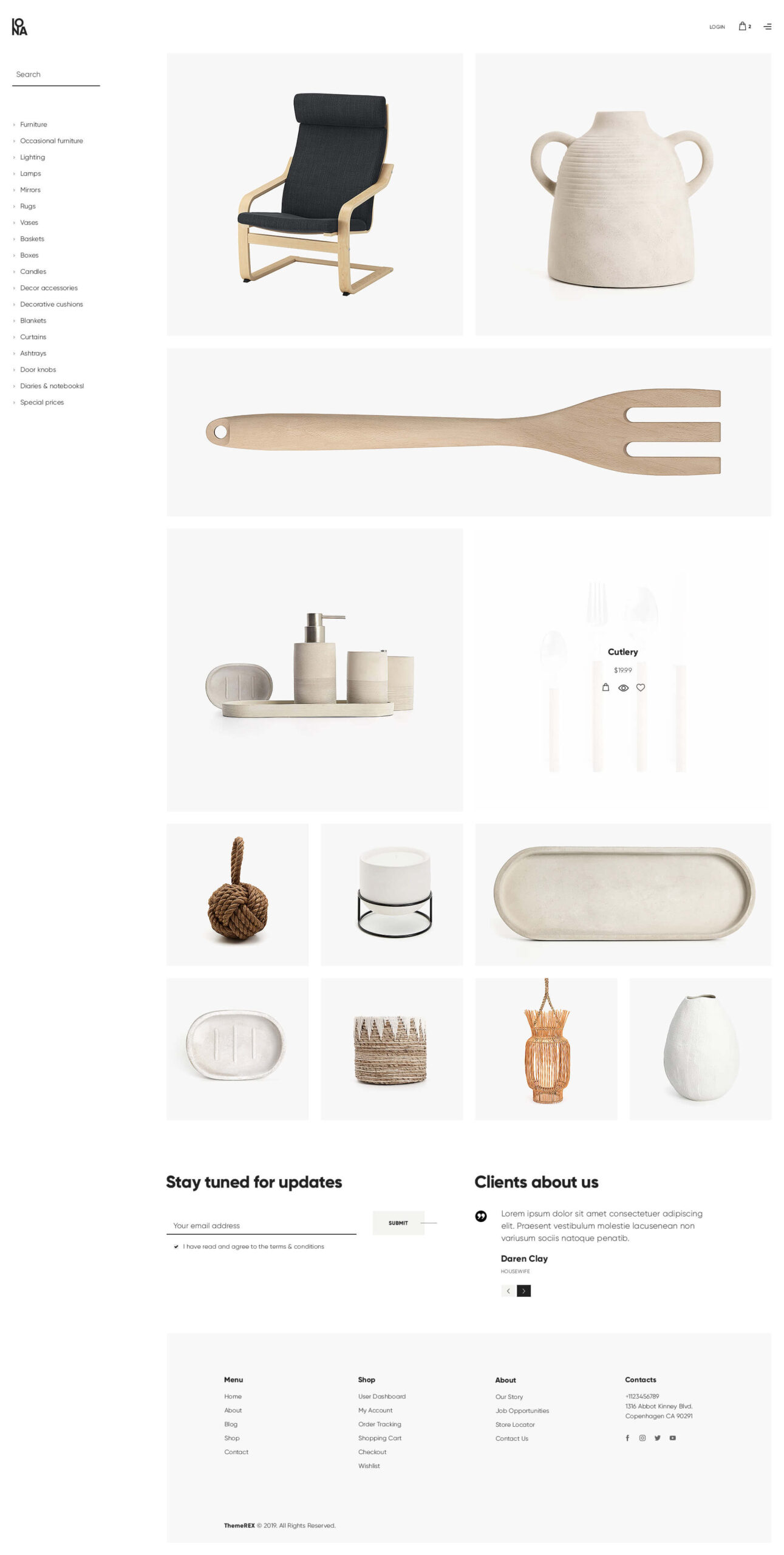 • Product grids, lists, or masonry layouts with easy-to-use category filters for showcasing your work.